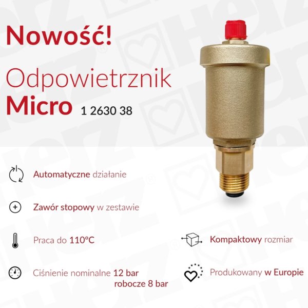 Przedstawiamy nowość od HERZ – automatyczny odpowietrznik HERZ Micro, zaprojektowany specjalnie dla zamkniętych systemów grzewczych. To niewielkie, ale niezwykle efektywne urządzenie, które pomoże zapewnić najwyższą wydajność instalacji.