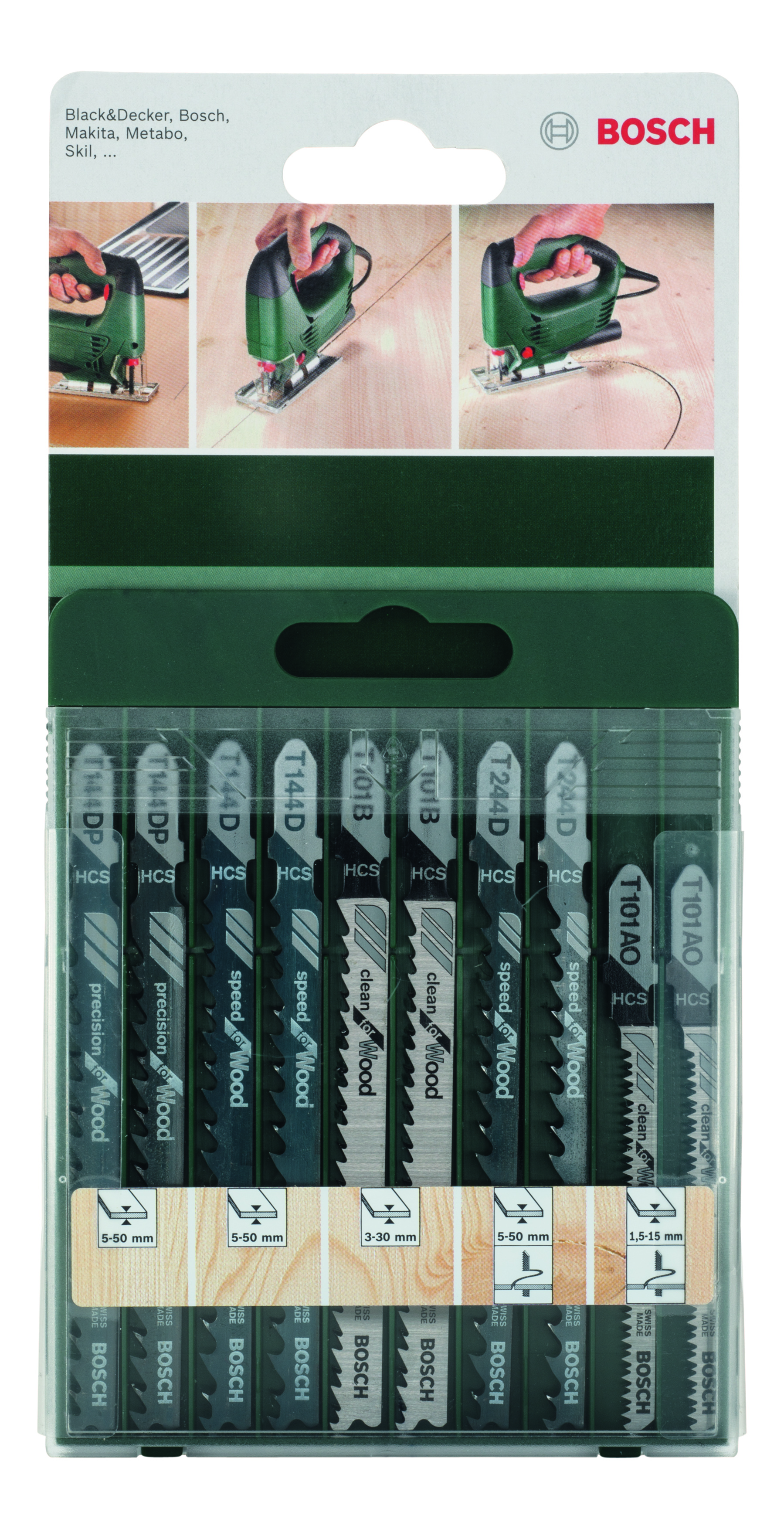 10-częściowy zestaw brzeszczotów do wyrzynarek, chwyt T T 144 D (2x), T 244 D (2x), T 101 B (2x), T 101 AO (2x), T 144 DP (2x)