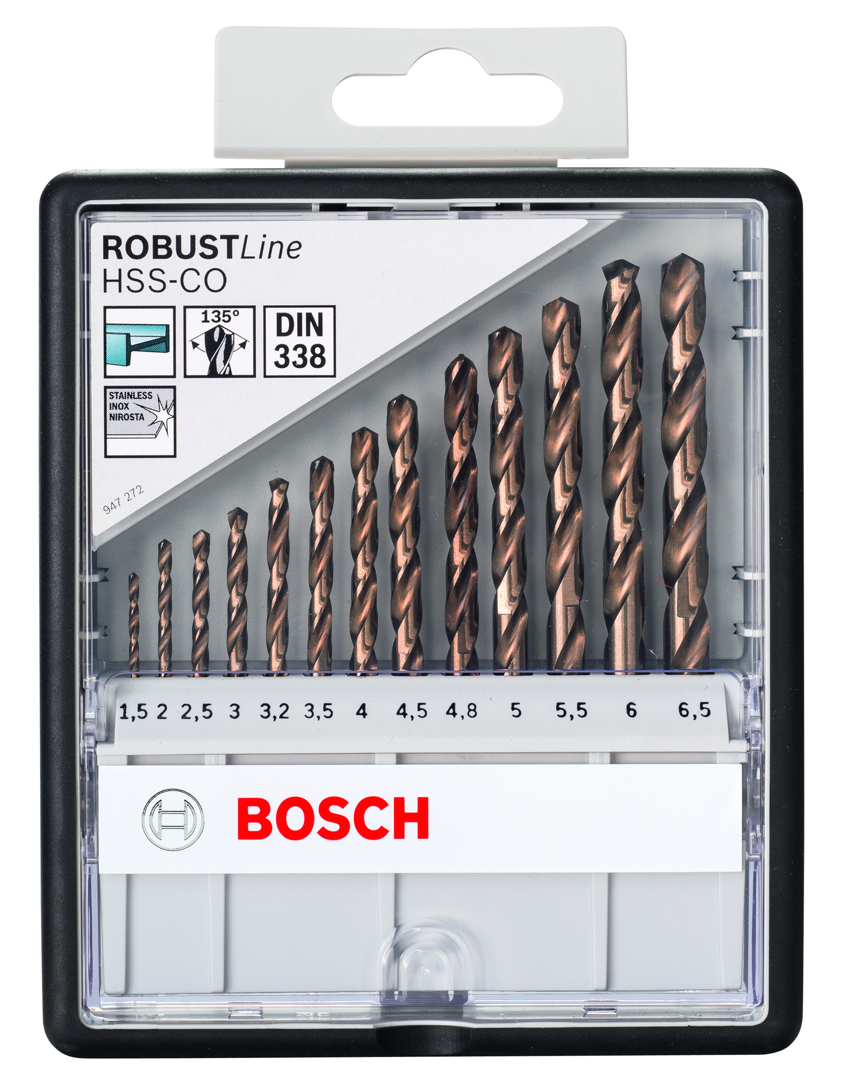 13-częściowy zestaw wierteł do metalu Robust Line HSS-Co, DIN 338, 135°