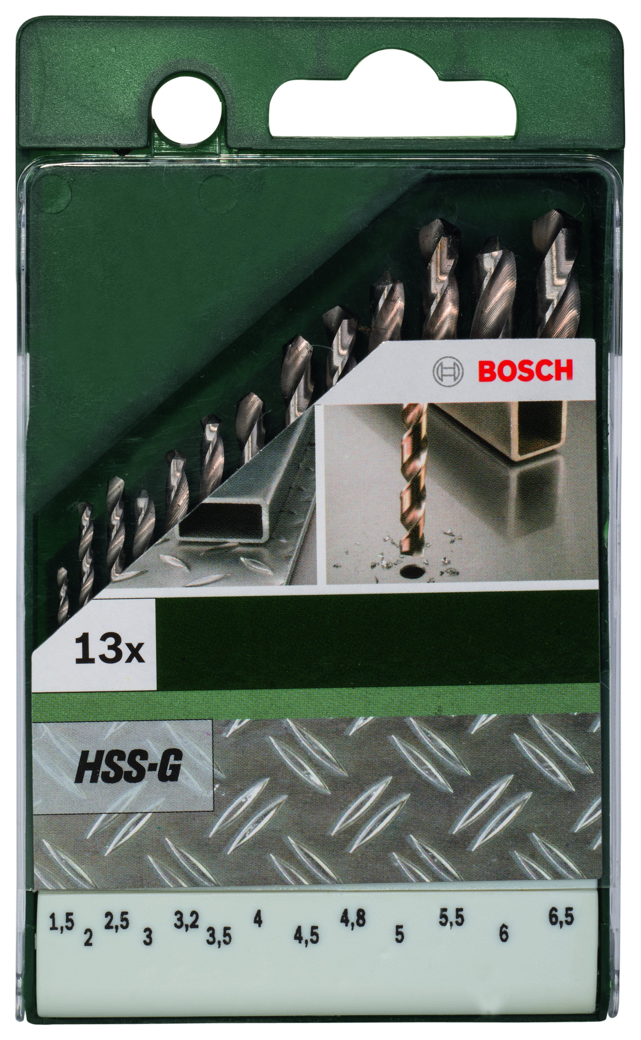 13-częściowy zestaw Wierteł do metalu HSS-G, DIN 338 1,5, 2,0, 2,5, 3,0, 3,2, 3,5, 4,0, 4,5, 4,8, 5,0, 5,5, 6,0, 6,5 mm