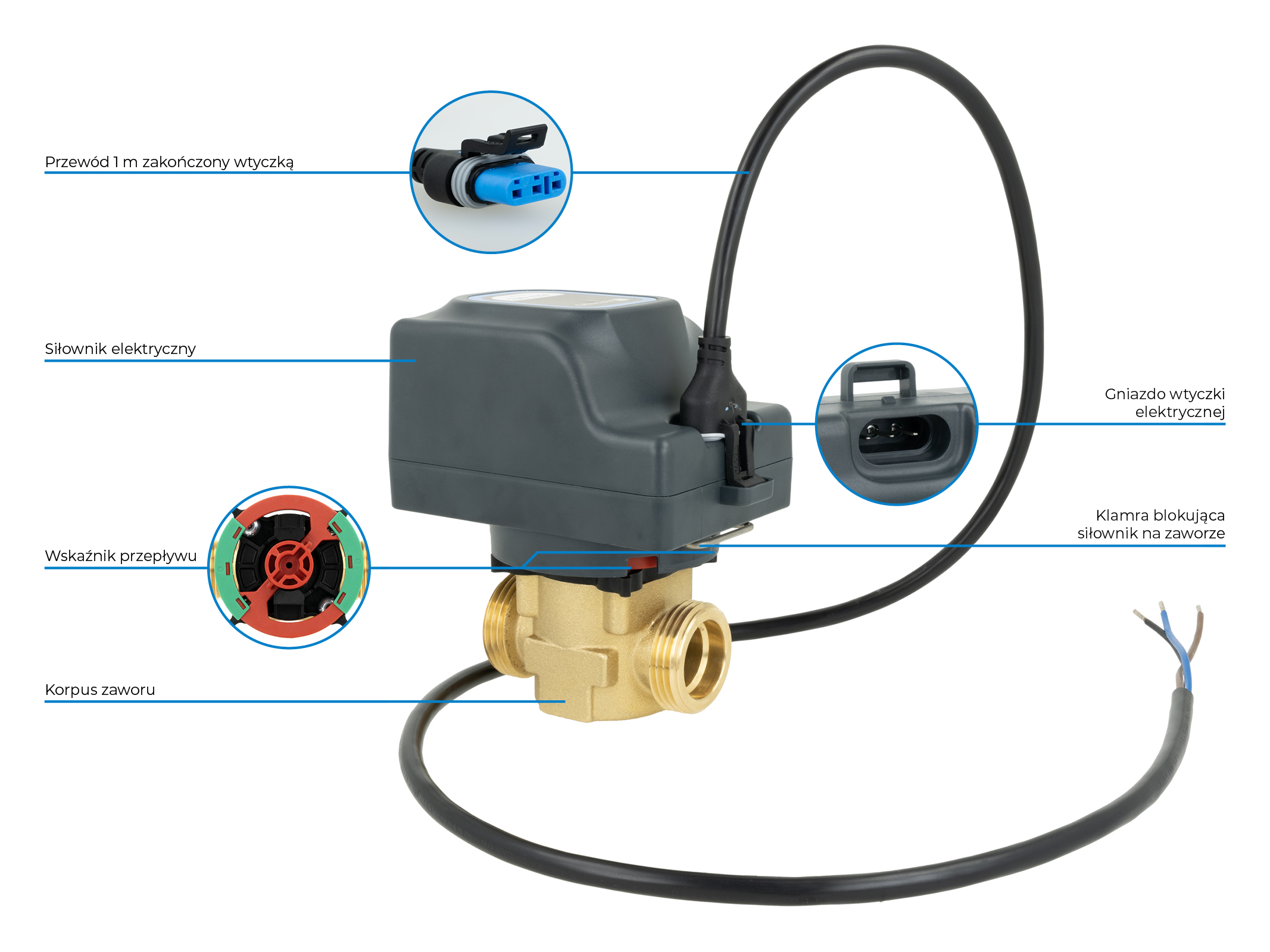- W połączeniu ze sterownikiem lub termostatem automatyzuje pracę instalacji.