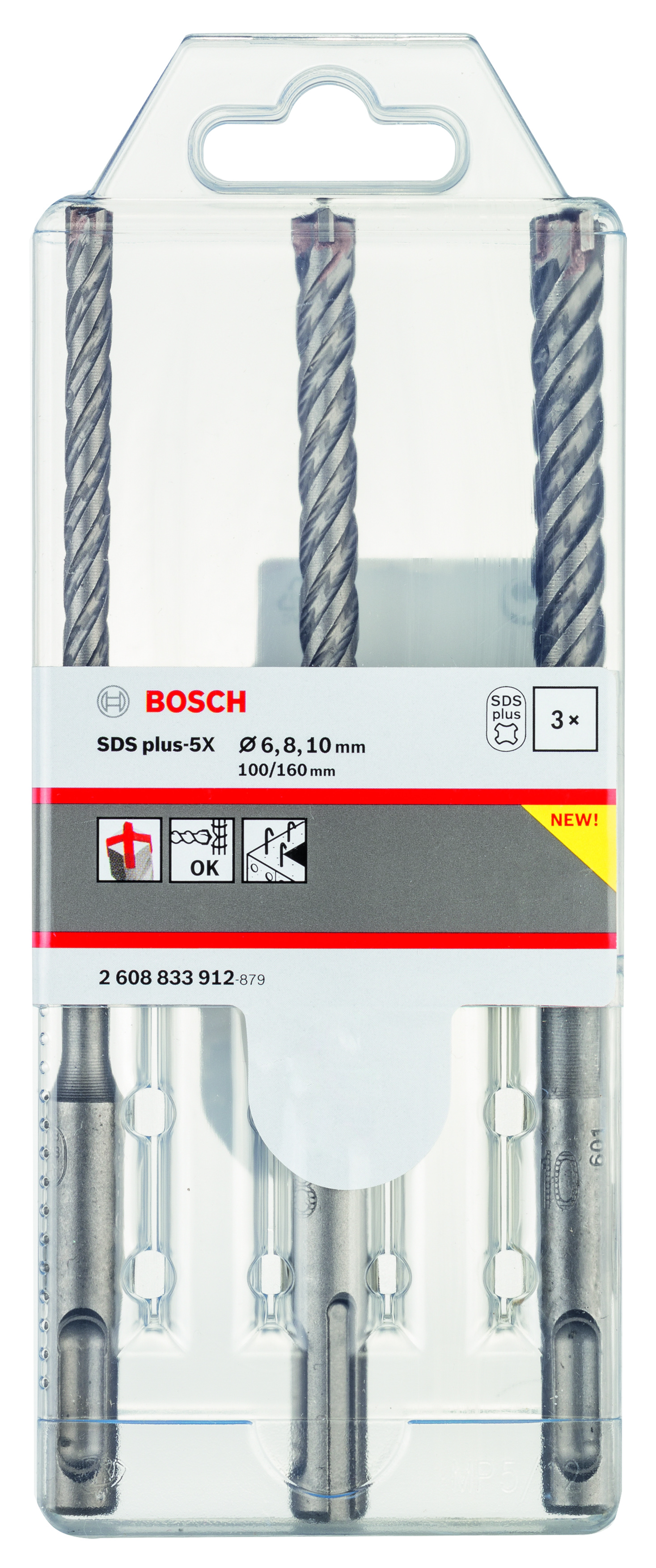 3-częściowy zestaw wierteł do młotów SDS plus-5X