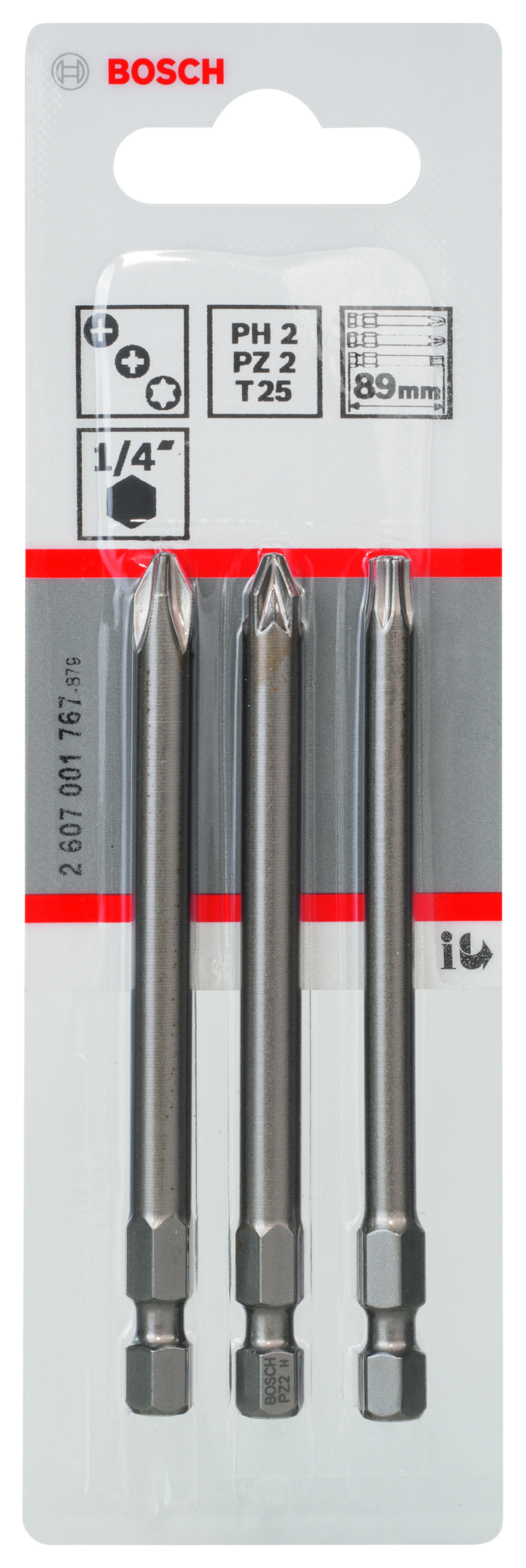 3-częściowy zestaw końcówek wkręcających Extra Hart PH2, PZ2, T25, 89 mm