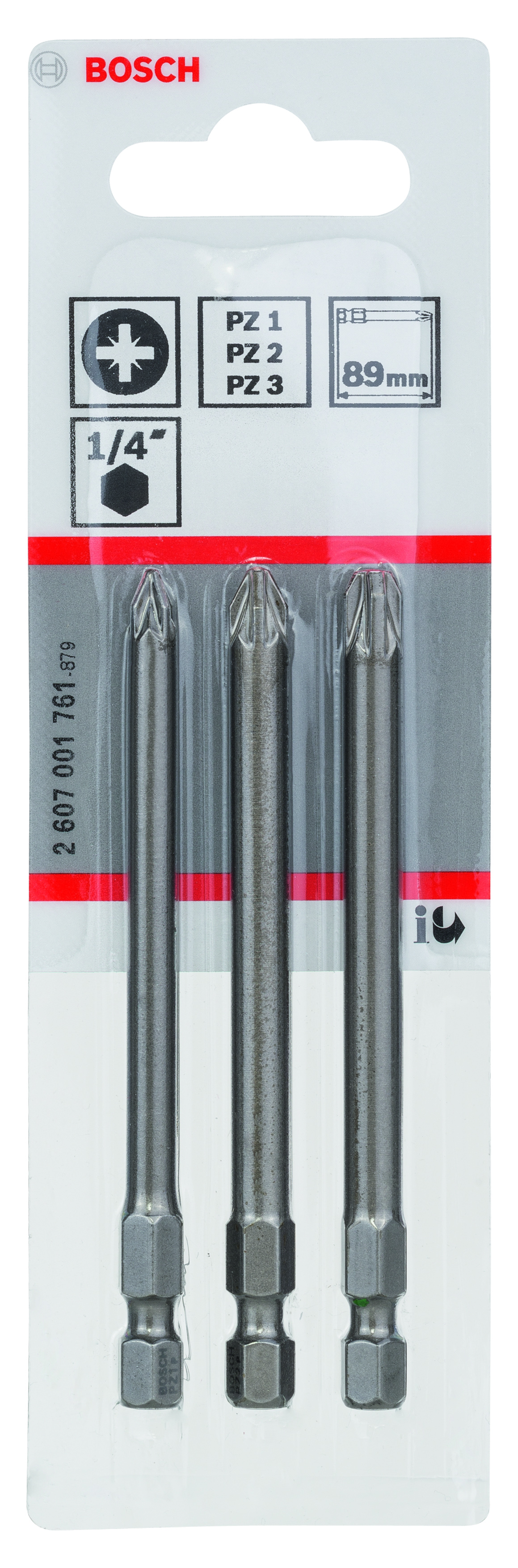 3-częściowy zestaw końcówek wkręcających Extra Hart PZ1, PZ2, PZ3, 89 mm