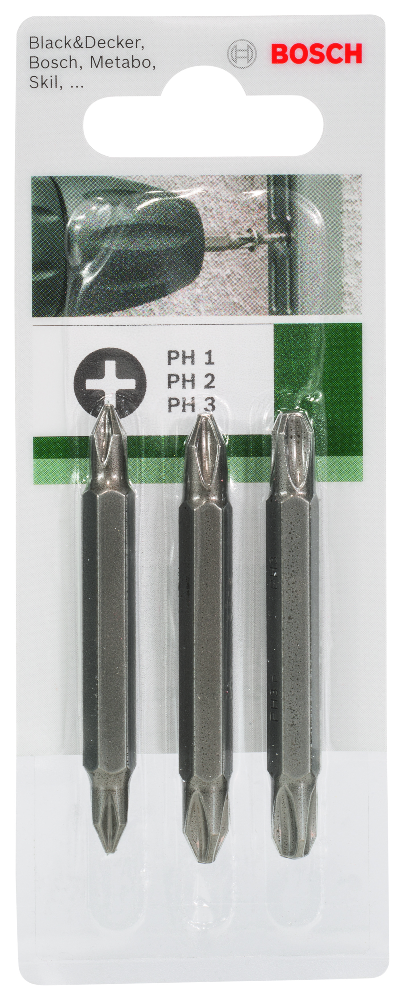 3-częściowy zestaw podwójnych końcówek wkręcających (PH, PH) PH1-PH1, PH2-PH2, PH3-PH3, 60 mm