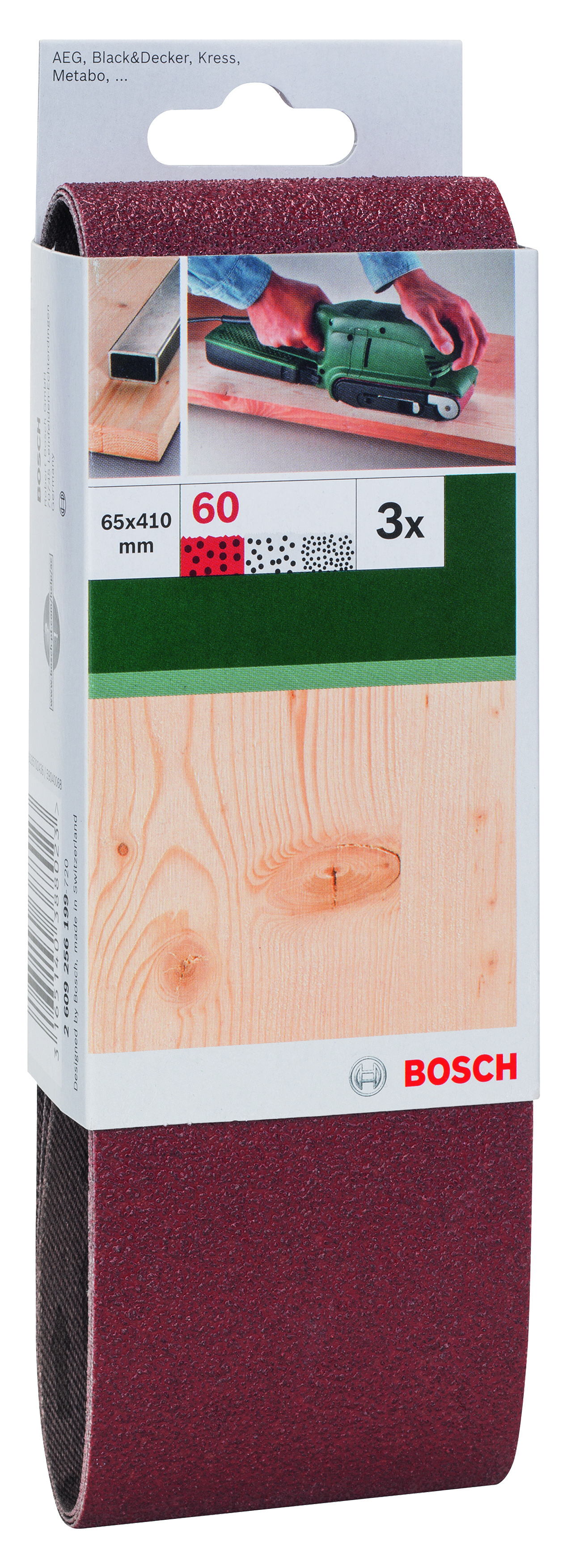 Zestaw pasów ściernych 65 x 410 mm (3 szt.)