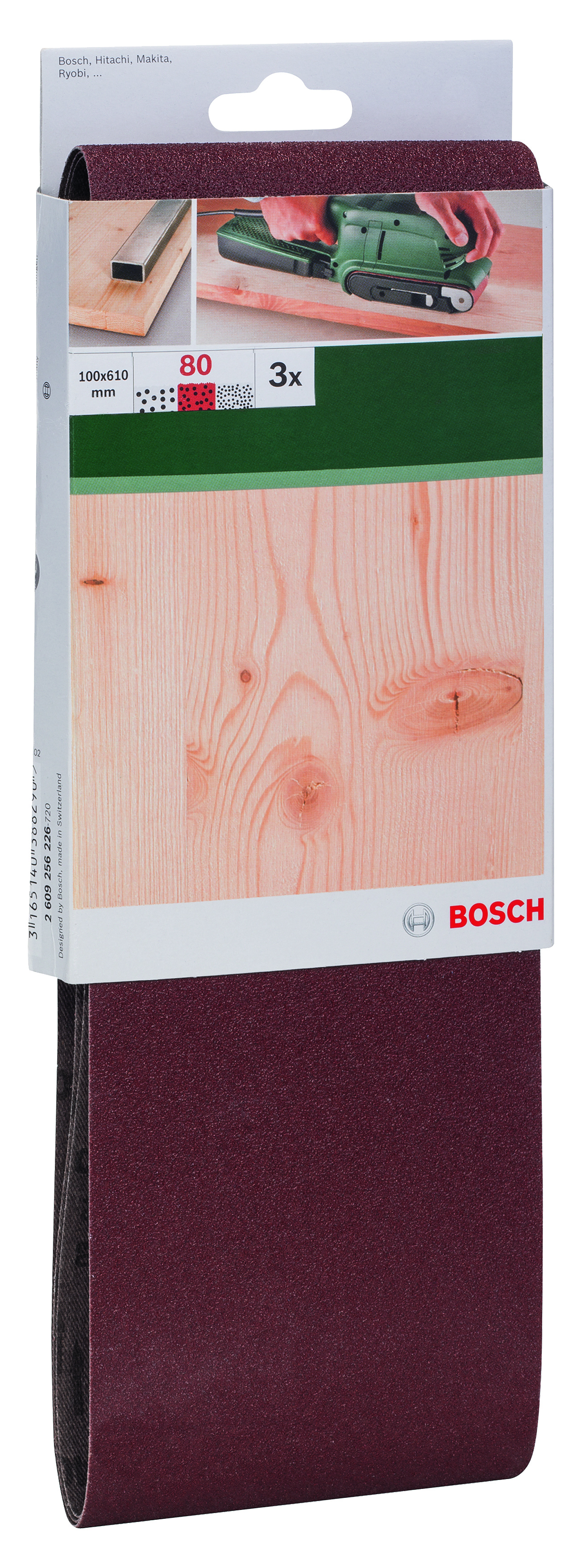 3-częściowy zestaw taśm szlifierskich do szlifierek taśmowych, wersja czerwona K = 80