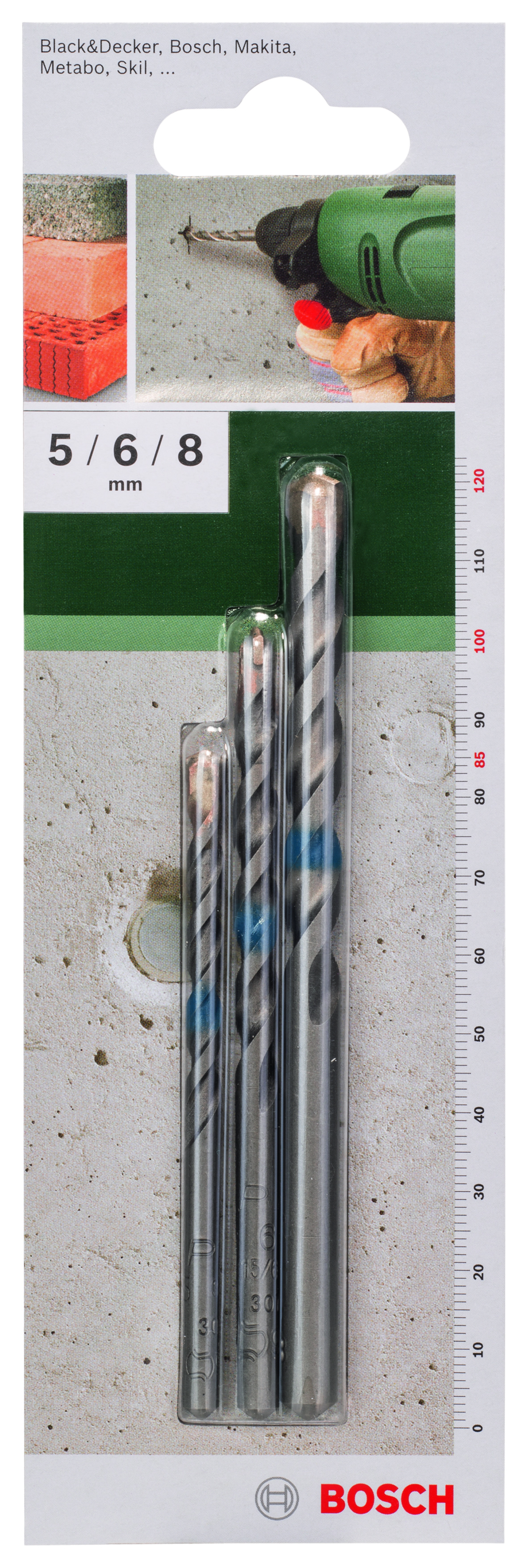 3-częściowy zestaw Wierteł do betonu 5,0 x 85, 6,0 x 100, 8,0 x 120