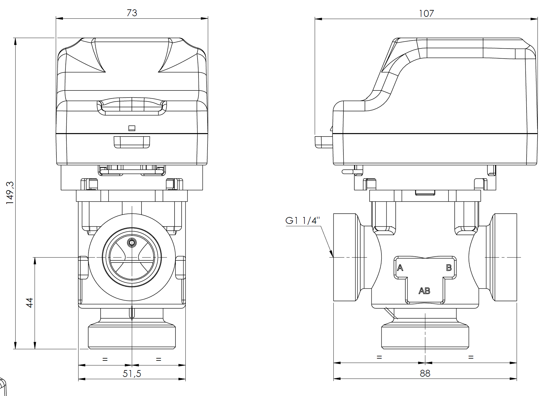 3-drogowy zawór strefowy AZV 844, DN25, G1 1/4'', Kvs 11, 230 V AC, AB-B