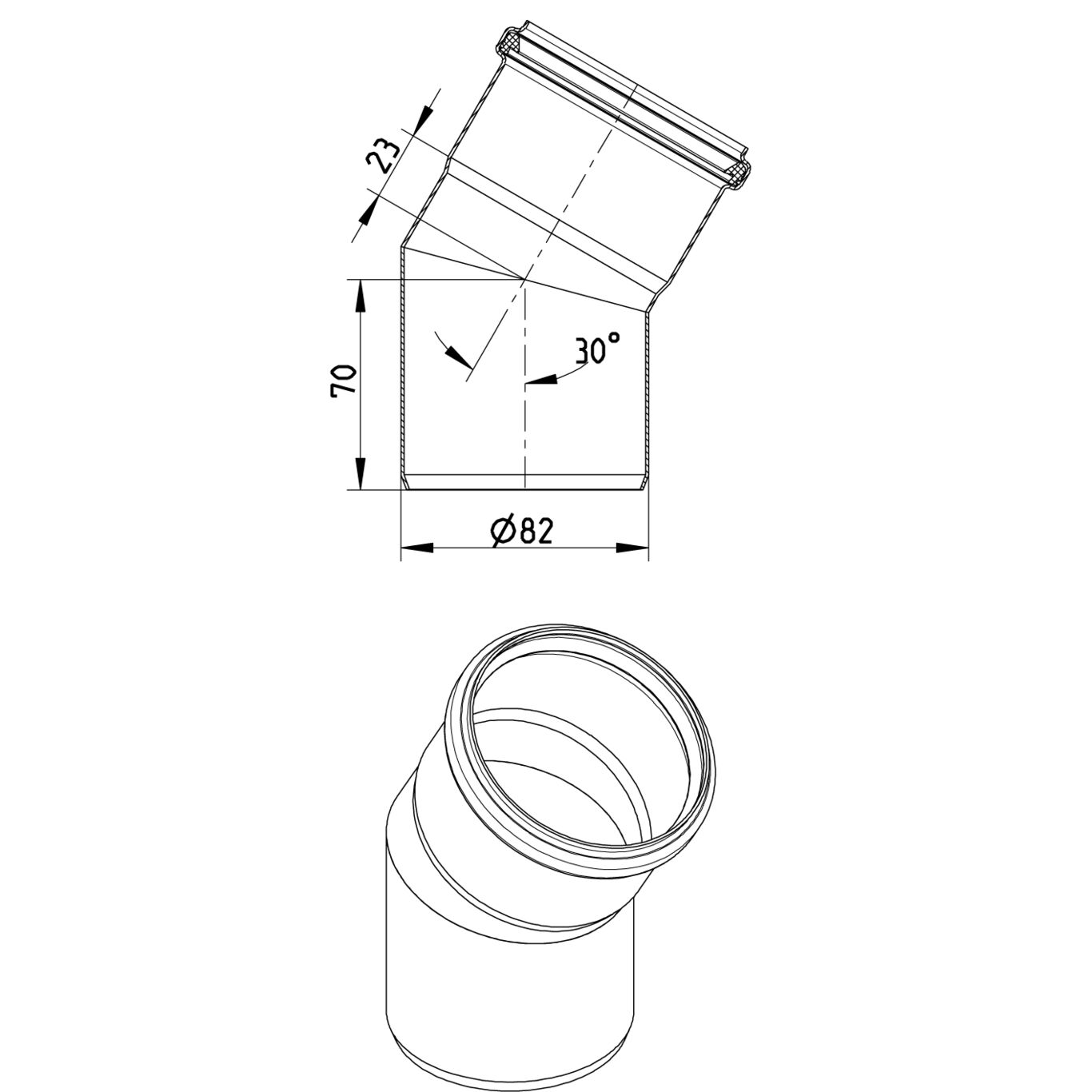 30 st. Kolano DN =82 mm, stal kwasoodporna