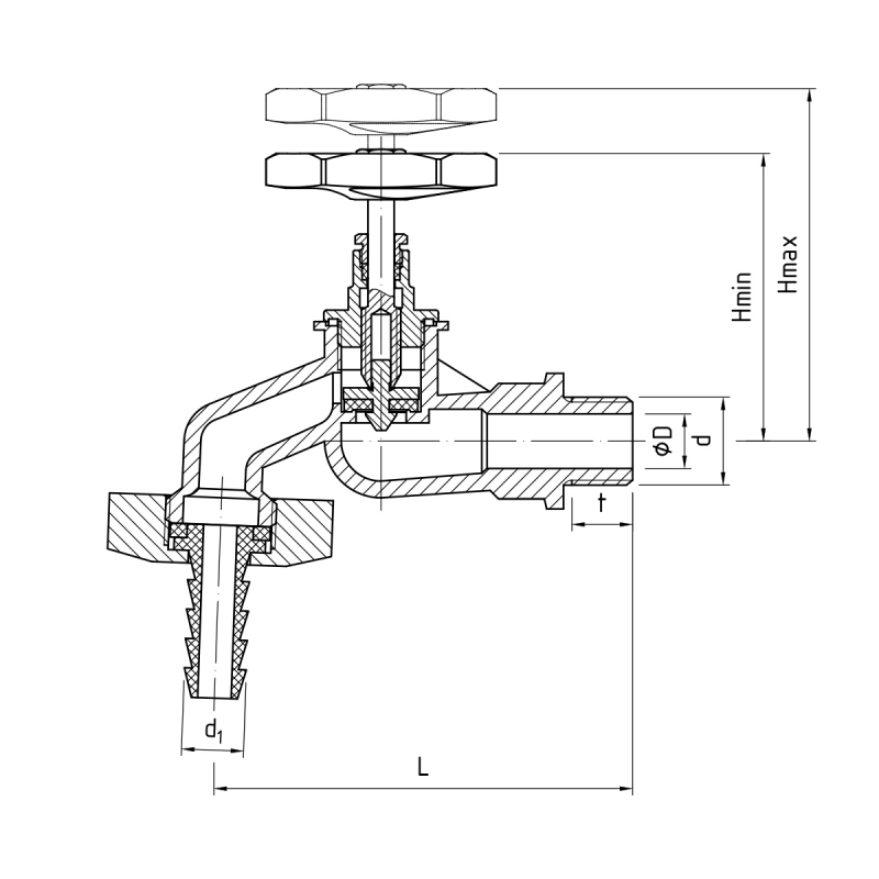 3100 Zawór żeliwny czerpalny ogrodowy 1/2"