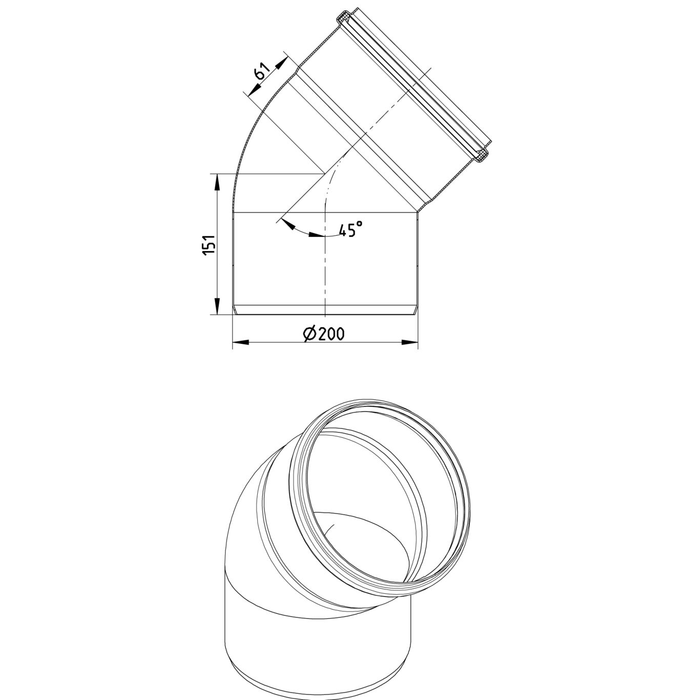 45 st. Kolano DN =200 mm, stal kwasoodporna