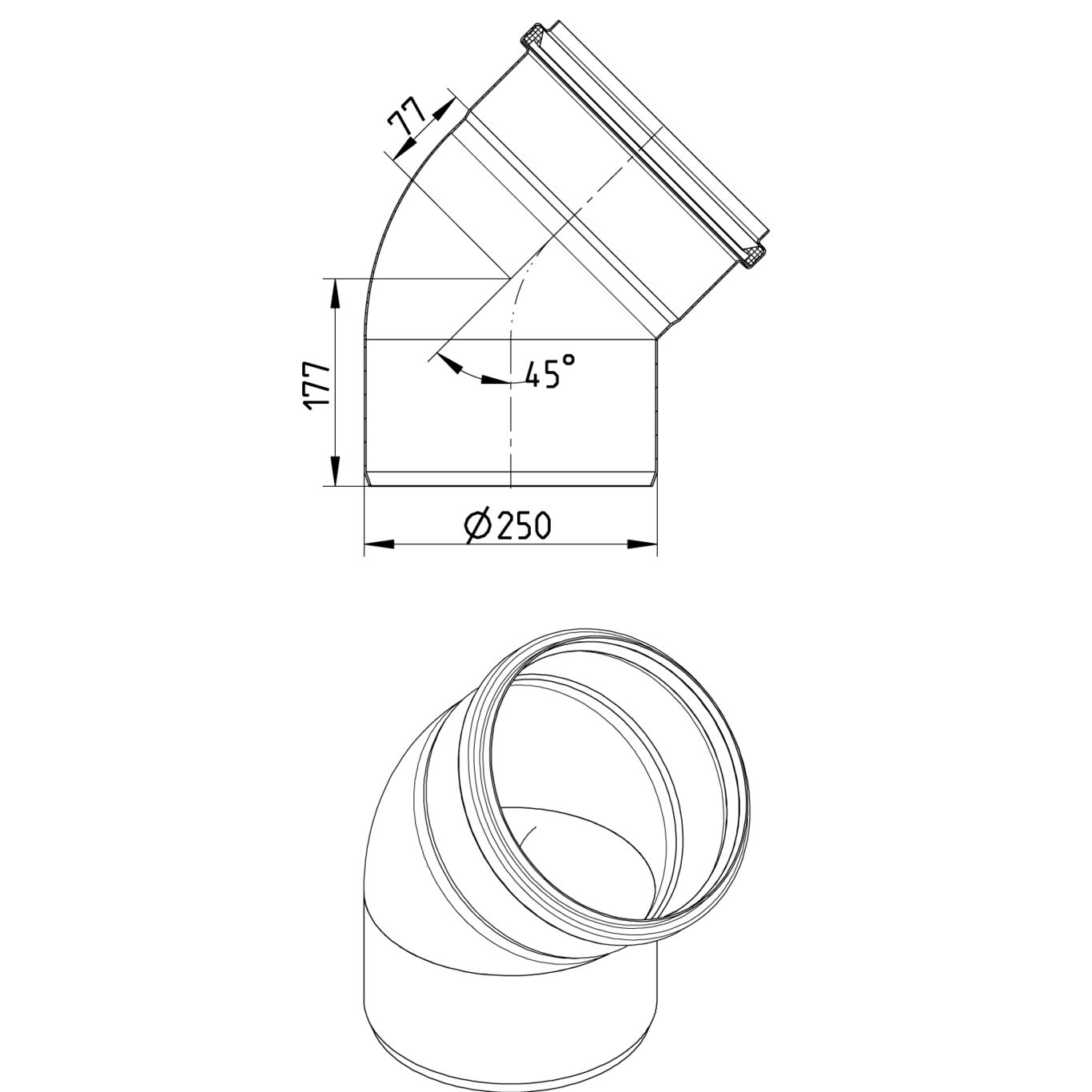 45 st. Kolano DN =250 mm, stal kwasoodporna