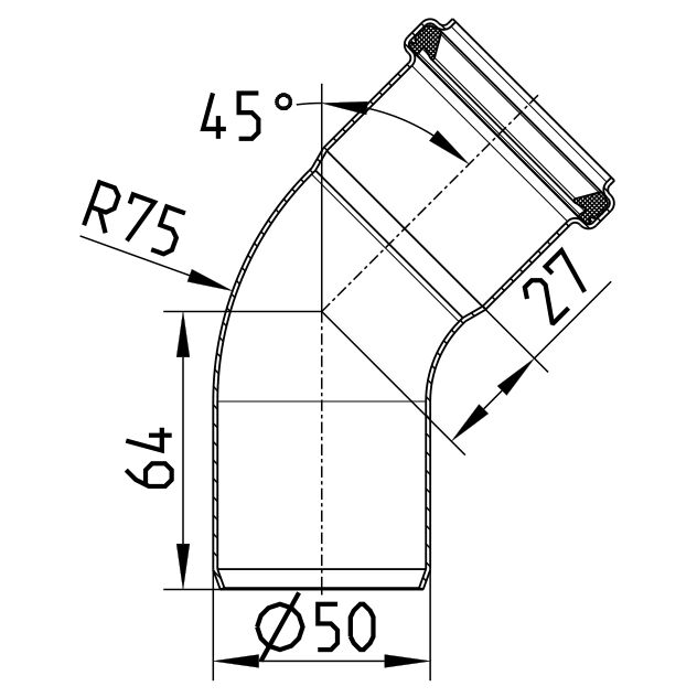 45 st. Kolano DN =50 mm, stal kwasoodporna