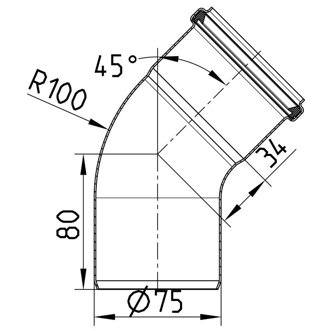 45 st. Kolano DN =75 mm, stal kwasoodporna