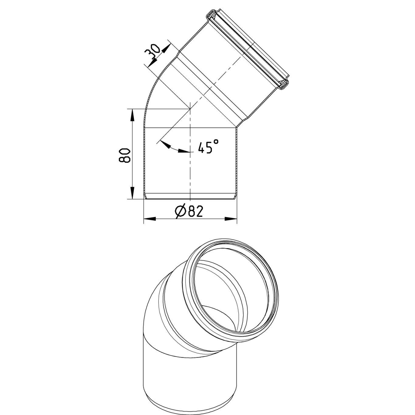 45 st. Kolano DN =82 mm, stal kwasoodporna