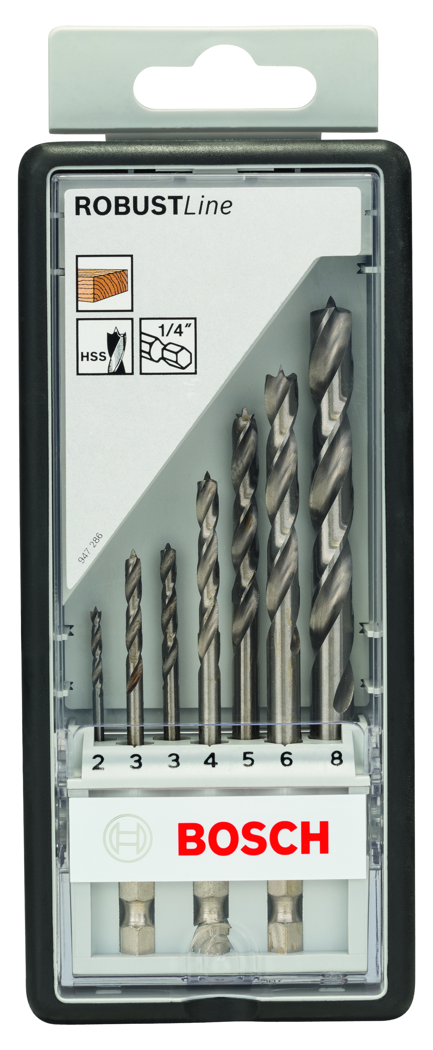 7-częściowy zestaw spiralnych wierteł do drewna Robust Line, chwyt sześciokątny 1/4"
