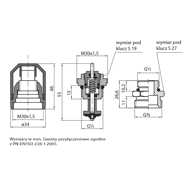 MAX CIŚNIENIE ROBOCZE: 1,0 MPa (10 bar), MAX TEMPERATURA ROBOCZA: +100 st. C
