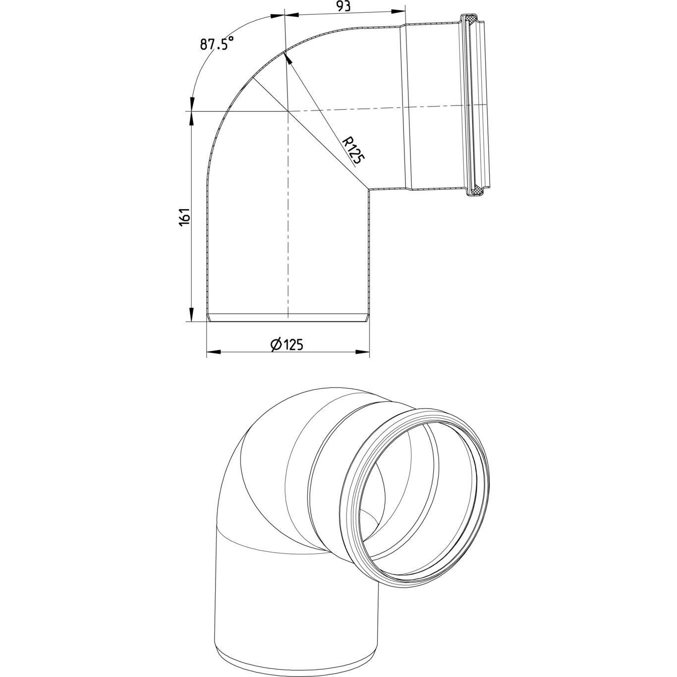 87.5 st. Kolano DN =125 mm, stal kwasoodporna