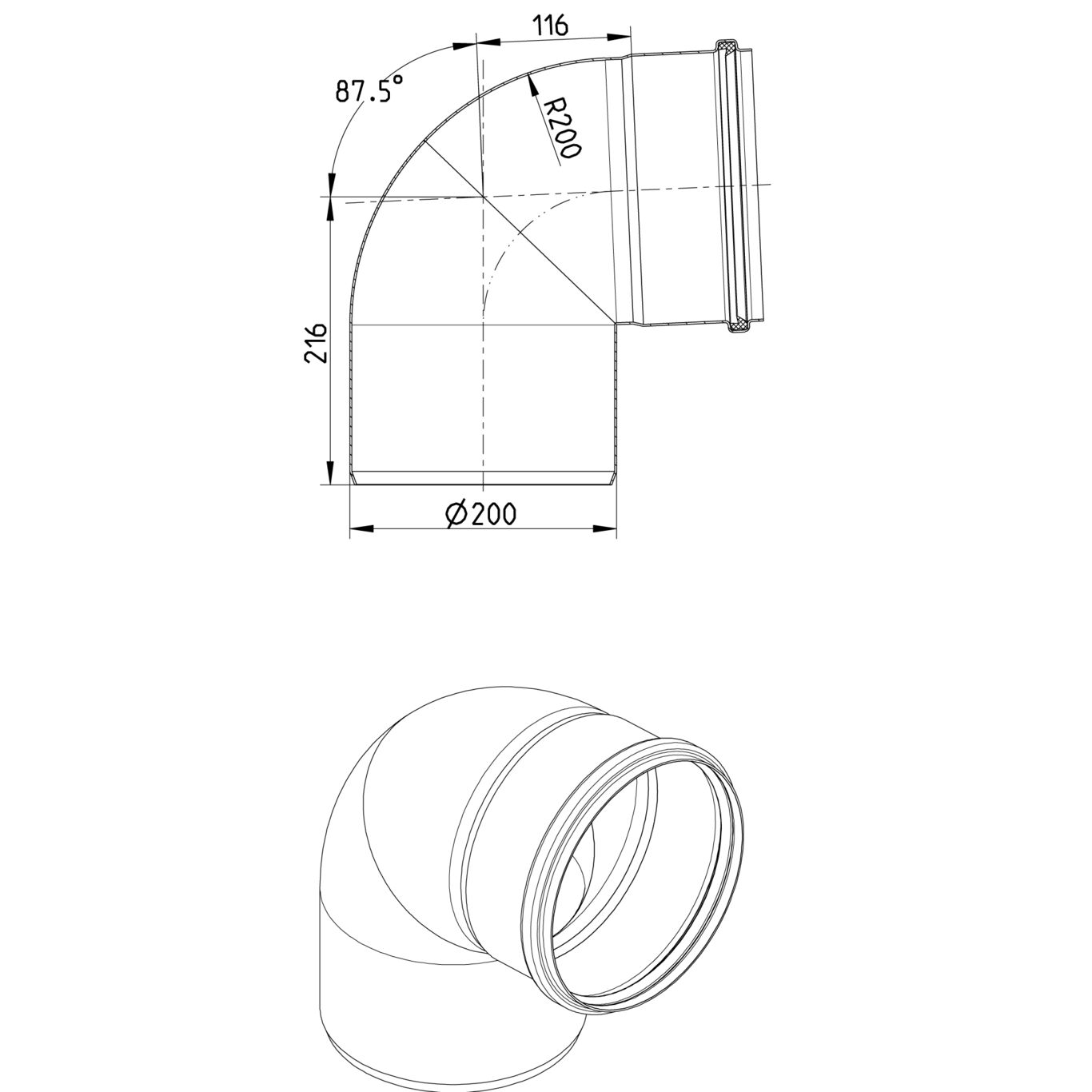 87.5 st. Kolano DN =200 mm, stal kwasoodporna