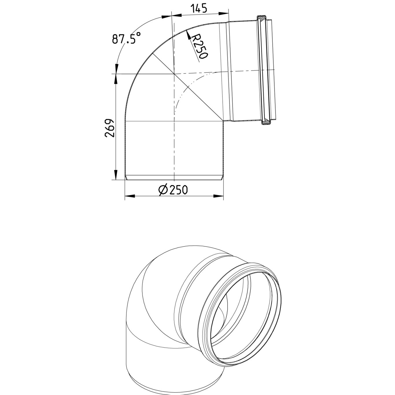87.5 st. Kolano DN =250 mm, stal kwasoodporna