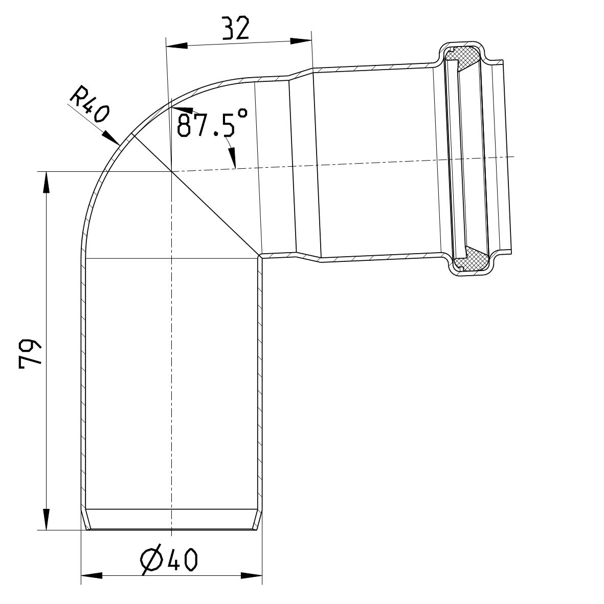 87.5 st. Kolano DN =40 mm, stal kwasoodporna