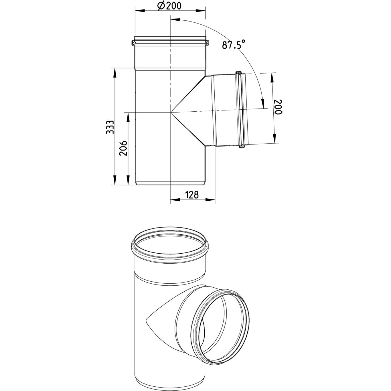 87.5 st. Trójnik DN =200x160 mm, stal kwasoodporna