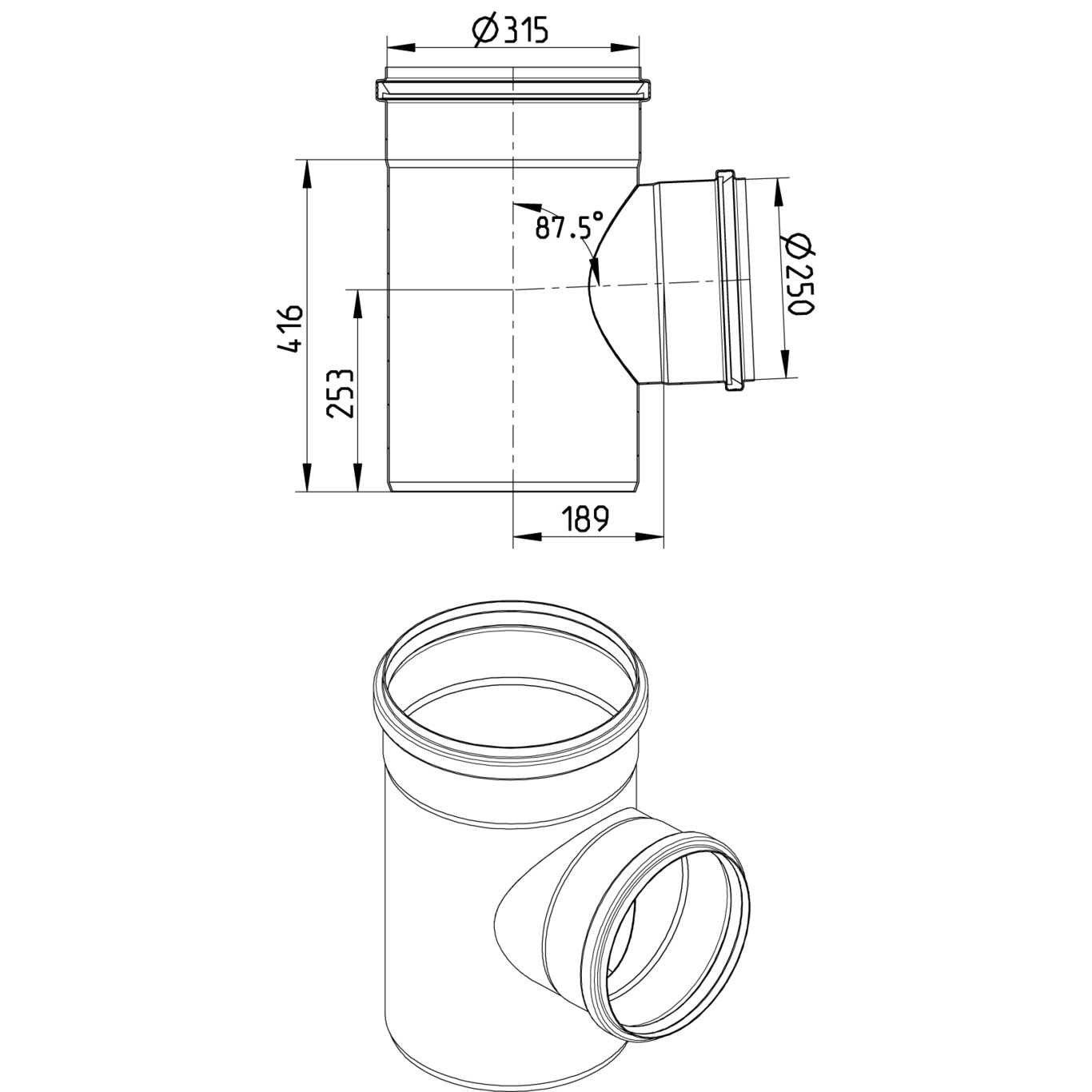 87.5 st. Trójnik DN =315x250 mm, stal kwasoodporna