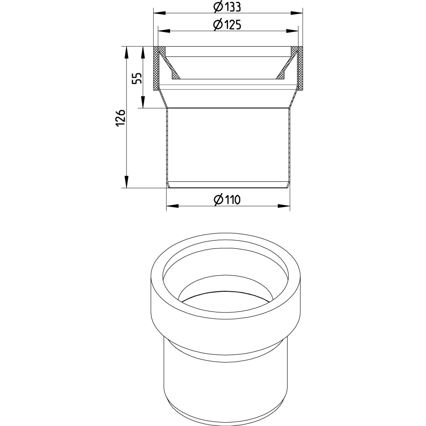Adapter do toalet DN =110 mm, stal kwasoodporna