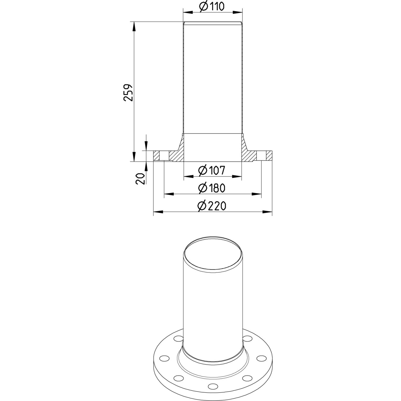 Adapter, rura z bosym końcem i kołnierzem, DN =75mm, stal kwasoodporna