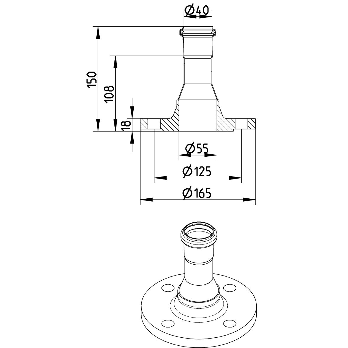 Adapter, rura z kielichem i kołnierzem, DN =40mm, stal kwasoodporna