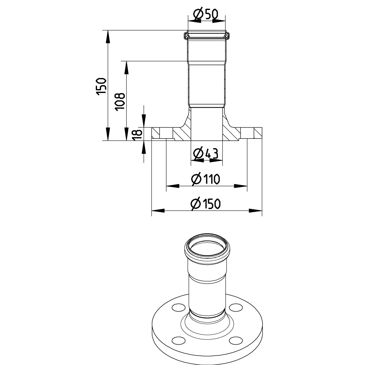 Adapter, rura z kielichem i kołnierzem, DN =50mm, stal kwasoodporna
