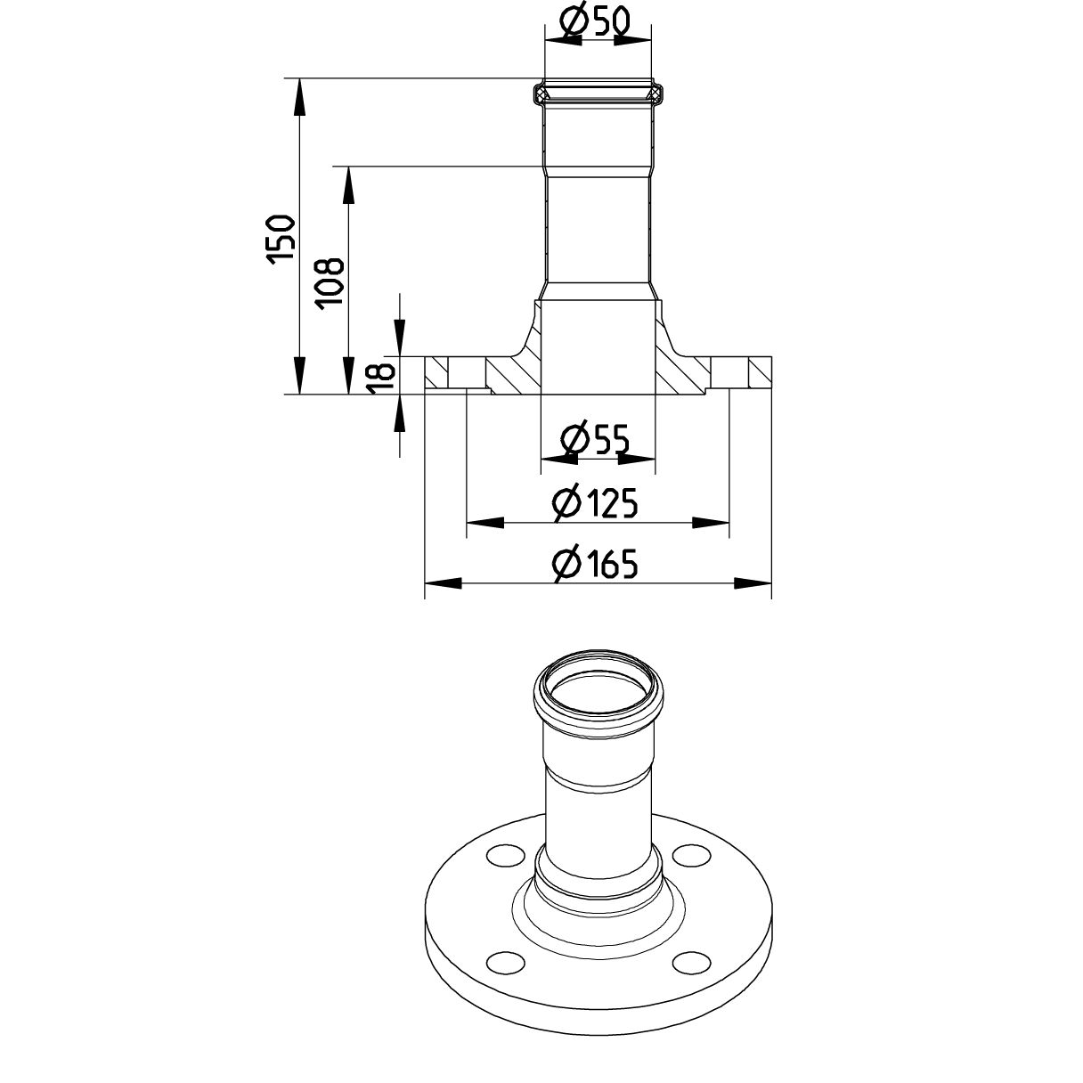 Adapter, rura z kielichem i kołnierzem, DN =50mm, stal kwasoodporna