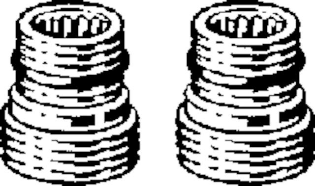 Adapter. Przeznaczenie: złączka przyłączeniowa zaworu do grzejnika przy zaworze grzejnikowym z gz R½, mosiądz, samouszczelniający, nr wzoru 1096.8, nr kat. 357 122, G1: ½ G2: ¾ ilość w zestawie: 2