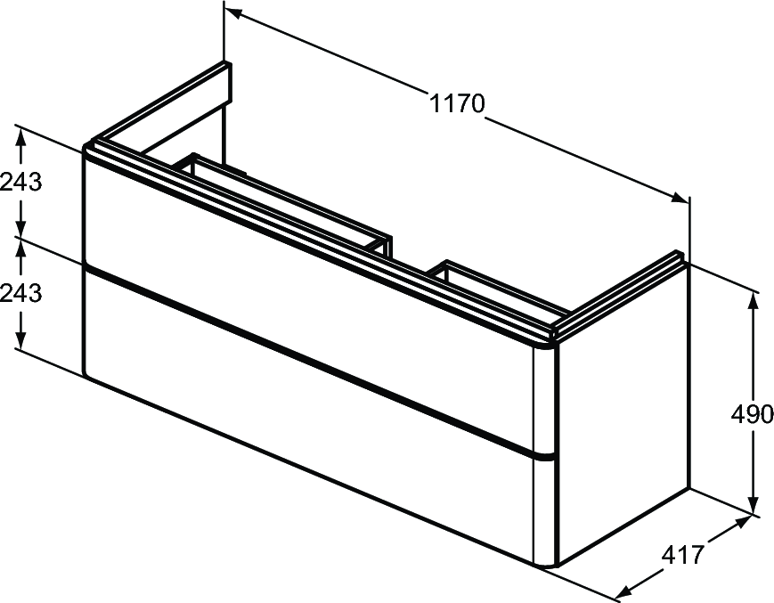 Z 2 szufladami z funkcjami push to open i samodomykania "soft close" oraz aluminiowym dekoracyjnym drążkiem na przednim panelu szuflady. Rekomendowany: syfon oszczędzający przestrzeń EE23033967 (dostępny w osobnym zamówieniu). Do montażu z umywalką Strada II z powierzchniami bocznymi 120 cm: T359501 (z 2 otworami na baterię) / T364101 (bez otworu na baterię). Zestaw montażowy w komplecie.