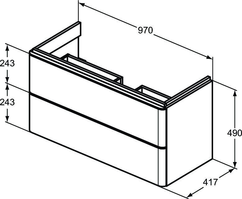Z 2 szufladami z funkcjami push to open i samodomykania "soft close" oraz aluminiowym dekoracyjnym drążkiem na przednim panelu szuflady. Rekomendowany: syfon oszczędzający przestrzeń EE23033967 (dostępny w osobnym zamówieniu). Do montażu z umywalką Strada II z powierzchniami bocznymi 100 cm: T372401 (z 2 otworami na baterię) / T300201 (z 1 otworem na baterię) T364001 (bez otworu na baterię). Zestaw montażowy w komplecie.