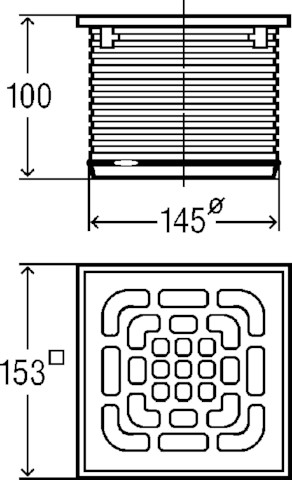 Advantix-nasadka, wymiar systemowy 145. Wyposażenie: Ramka ze stali nierdzewnej 1.4404, ruszt ze stali nierdzewnej 1.4301, uszczelka do nasadki. Dane techniczne: klasa obciążenia K=300 kg, nr wzoru 4922.6, nr kat. 555 511, L: 150 B: 150 H: 5