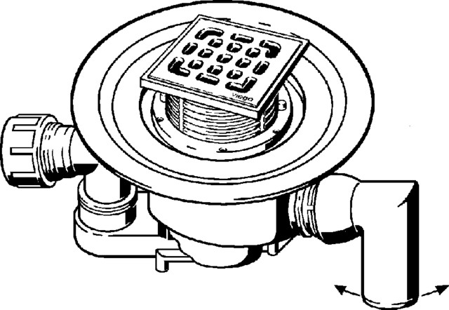 Advantix-odpływ łazienkowy, wymiar systemowy 100. Wyposażenie: Obracana nasadka 100×100 mm z regulacją wysokości, ramka z tworzywa sztucznego, ruszt ze stali nierdzewnej 1.4301, korek, kołnierz uszczelniający, syfon wyjmowalny, dopływ DN40 obrotowy, rura odpływowa 90° z przegubem kulowym. Dane techniczne: klasa obciążenia K=300 kg, wydajność odpływu przy wysokości spiętrzenia 10 mm 0,66 l/s, wydajność odpływu przy wysokości spiętrzenia 20 mm 1,1 l/s, wydajność dopływu 1,2 l/s, wg PN-EN 1253, nr wzoru 4911.6, nr kat. 556 884, DN: 50