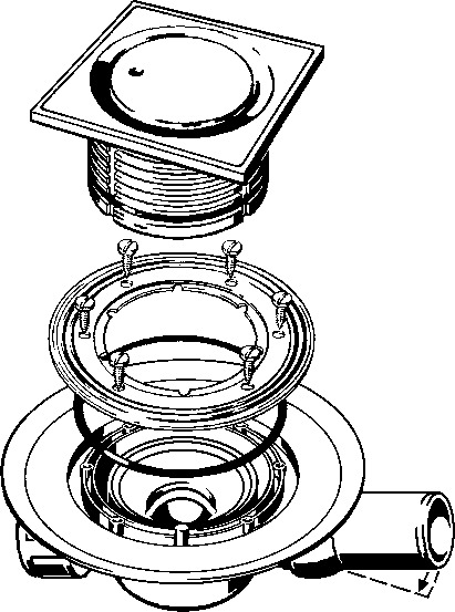 Advantix-odpływ łazienkowy, wymiar systemowy 100. Wyposażenie: Obracana nasadka 100×100 mm z regulacją wysokości, ruszt Visign z tworzywa sztucznego chromowany, korek, kołnierz uszczelniający ze stali nierdzewnej, syfon wyjmowalny, dopływ DN40 (nie przechodzi przez syfon!), rura odpływowa z przegubem kulowym. Dane techniczne: wysokość zamknięcia wodnego 30 mm, klasa obciążenia K=300 kg, wydajność odpływu przy wysokości spiętrzenia 10 mm 0,4 l/s, wydajność odpływu przy wysokości spiętrzenia 20 mm 0,6 l/s, wydajność odpływu wg PN-EN 1253, nr wzoru 4936.1, nr kat. 467 395,