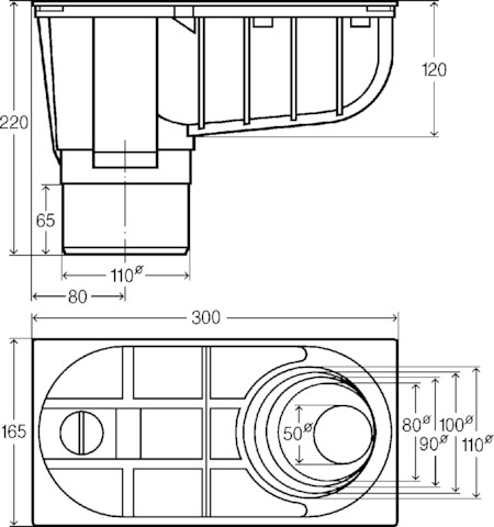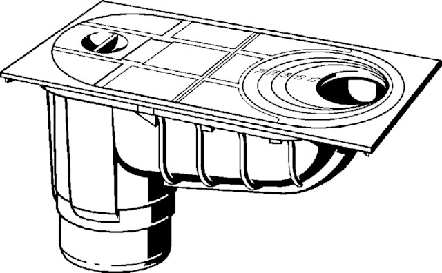 Advantix-odpływ na deszczówkę. Przeznaczenie: przyłącze rurociągowe od DN50–100. Wyposażenie: Wyjmowane sitko. Dane techniczne: wydajność odpływu przy wysokości spiętrzenia 20 mm 6 l/s, wg PN-EN 1451, nr wzoru 4970, nr kat. 586 744, DN: 100 odpływ pionowy,