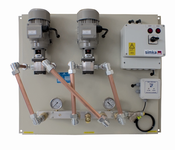 Dzięki zastosowaniu układu z dwiema pompami, zwiększamy ich żywotność, jak również zapewniamy nieprzerwaną pracę układu w przypadku awarii jednej z pomp druga sprawna pompa przejmuje pracę po uszkodzonej.