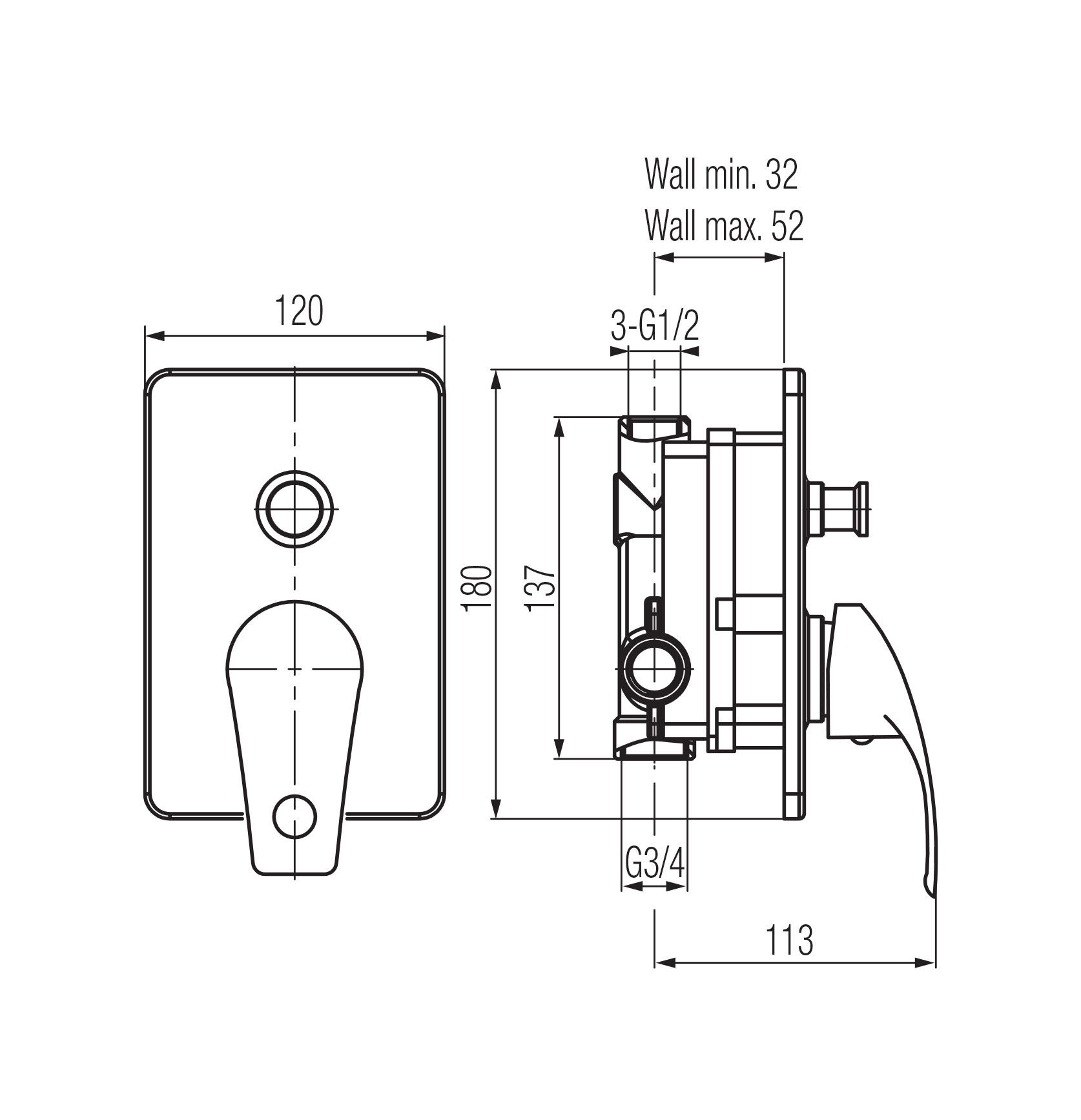 ANGELO Bateria wannowa-natryskowa podtynkowa