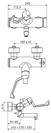 Armatura umywalkowa VITUS VW-AH-T, naścienna, wysięg 210 mm, z dźwignią łokciową, z termostatem