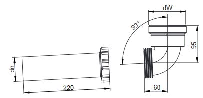 Kolano LKKG-3 PP o kącie 93° z rurką.