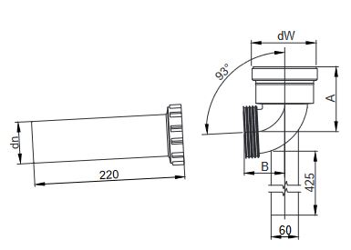 Kolano LKKG-4 PP o kącie 93° na podstawie z rurką.