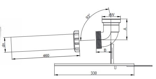Kolano LKKG-02 PP o kącie 93° podparte z długą rurką.