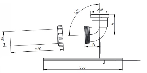 Kolano podparte LKKG-2 PP o kącie 93° z kątownikiem i rurką.