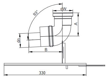 Kolano LKK-1 PP o kącie 93° podparte redukcyjne z kątownikiem.