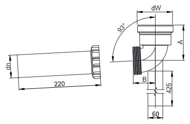 Kolano redukcyjne LKKG-4 PP o kącie 93° na podstawie z rurką.