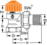 Automatyczny zawór termostatyczny z ogranicznikiem przepływu w technologii AFC, Eclipse DN 20, kątowy